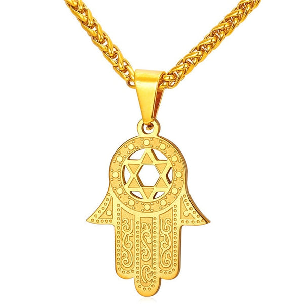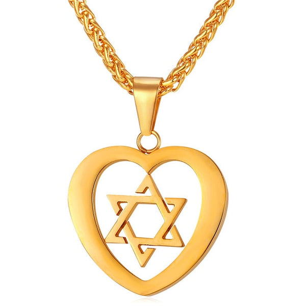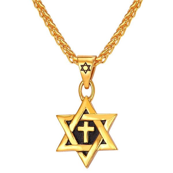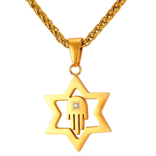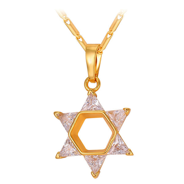 U7 Jewish Magen Star of David Necklace Men/Women Bat Mitzvah Gift Israel Judaica Hebrew Jewelry Hanukkah Pendant Gold Color P723