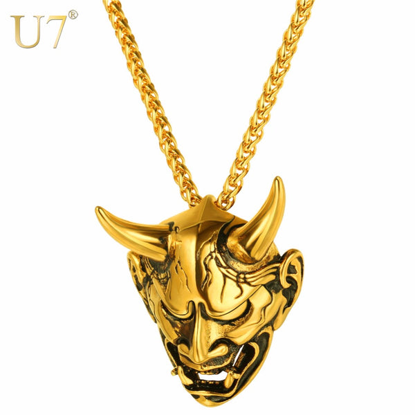 U7 Necklace Gothic Horn Evil Devil Demon Stainless Steel Pendant & Chain Gold/Black Color Christmas Gift Jewelry Necklaces P1142